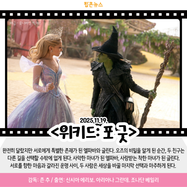 전혀 달랐지만 서로에게 가장 소중한 친구가 된 엘파바와 글린다. 마법 같은 우정을 나누던 두 사람은 오즈의 마법사와 그를 둘러싼 비밀을 알게 되며 다른 길을 선택할 운명에 놓인다. 세상의 시선을 두려워하지 않는 ‘사악한 마녀’ 엘파바와 모두의 사랑을 받지만 잃을 것을 두려워하는 ‘착한 마녀’ 글린다. 결국 서로 대척점에 선 두 마녀는 거대한 여정의 끝에서 모든 운명을 뒤바꿀 선택과 마주하게 된다.