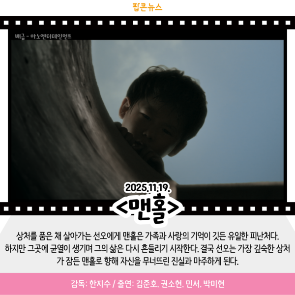 지워지지 않는 어린 시절의 상처를 안고 살아가는 고등학생 선오는 겉으로는 평범해 보이지만 마음속 깊은 균열을 숨기고 있다. 현실이 버거워질 때마다 찾은 맨홀은 누나와 강아지 달이, 여자친구 희주와의 따뜻한 기억이 남아 있는 유일한 안식처였다. 그러나 어느 순간부터 그 공간에 이상한 낙차가 생기고, 선오의 삶은 다시 무너질 조짐을 보인다. 결국 그는 가장 깊은 내면의 상처와 마주하기 위해 맨홀 속으로 향하게 된다. [팝콘뉴스]